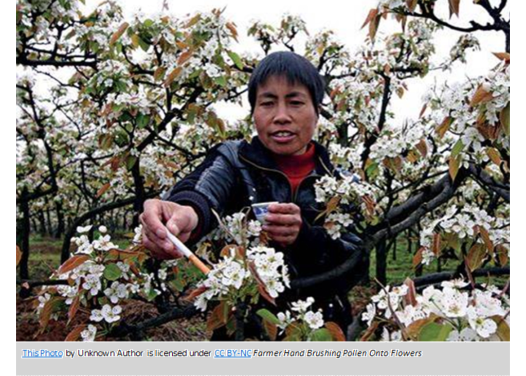 However, decline of managed bee colonies and bee populations poses a major threat to our symbiotic relationships with bees. For farmers, the loss of bees is another added labor, as they will have to pollinate their crops by hand, as many farmers have already resorted to. According to bee specialist, Dave Goulson, of the University of Sussex, people are “rather rubbish” as pollinating, as it can be very hard for humans and a paintbrush to correctly pollinate the stigma of the flower, which can create a dangerously low production yield (Deutsche, 2021). As a response to this, Goulson recommends cultivating patches of wildflowers so that bees can feed while crops are not in bloom. In fact, many European and North American farmers have already adopted this idea, planning strips of flowers along the edges of their fields to help conserve bee populations. He, along with many other bee specialists, also recommends a limited use of pesticides in crops (Deutsche, 2021).